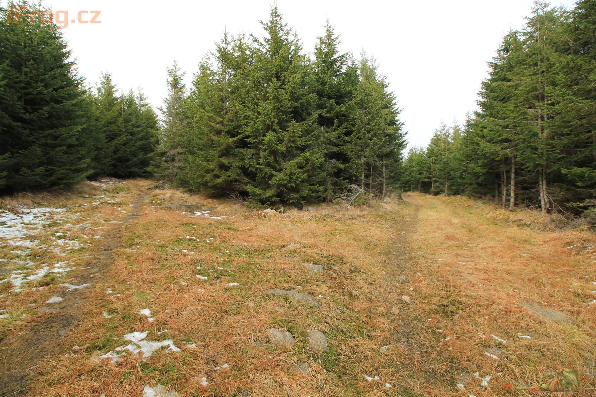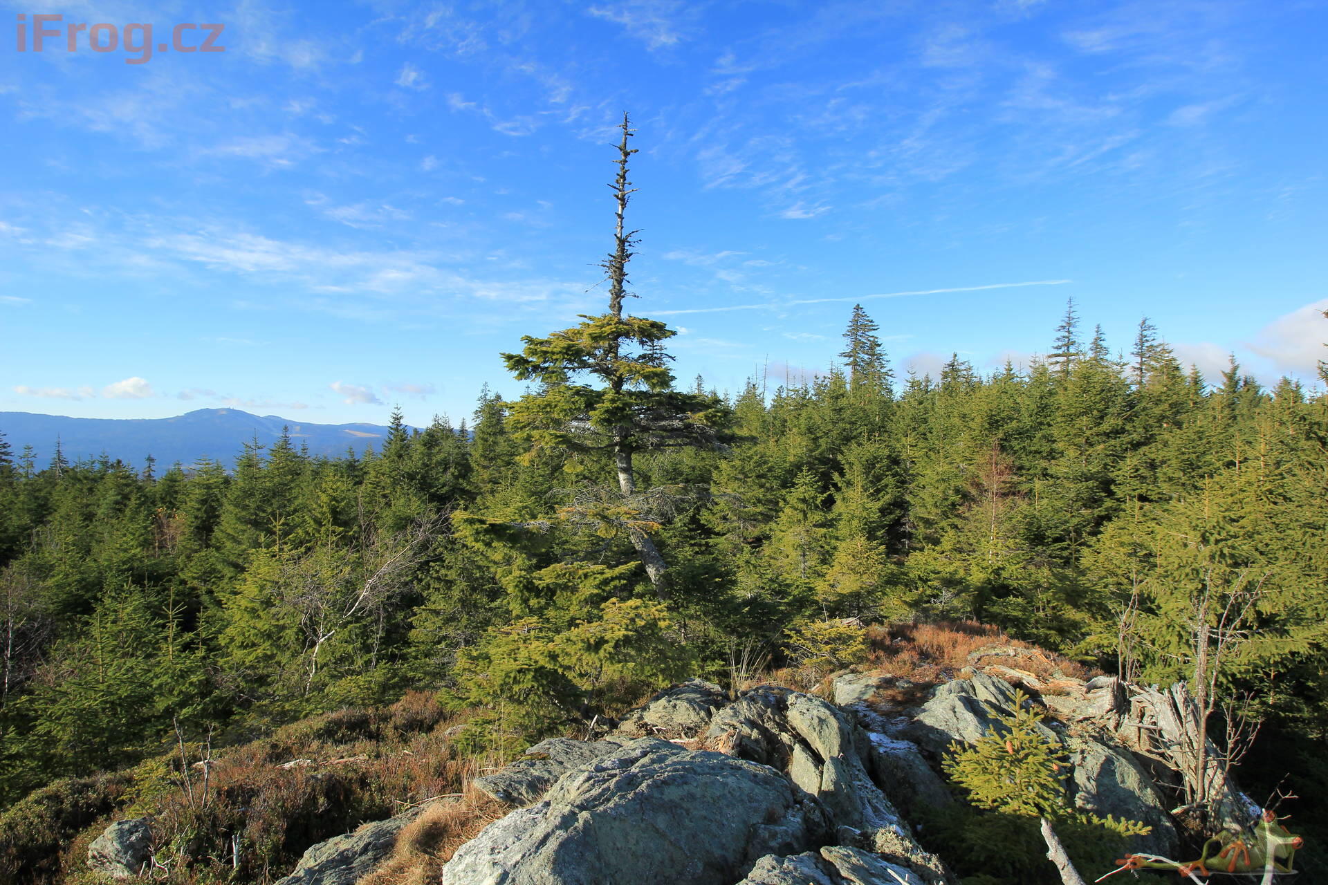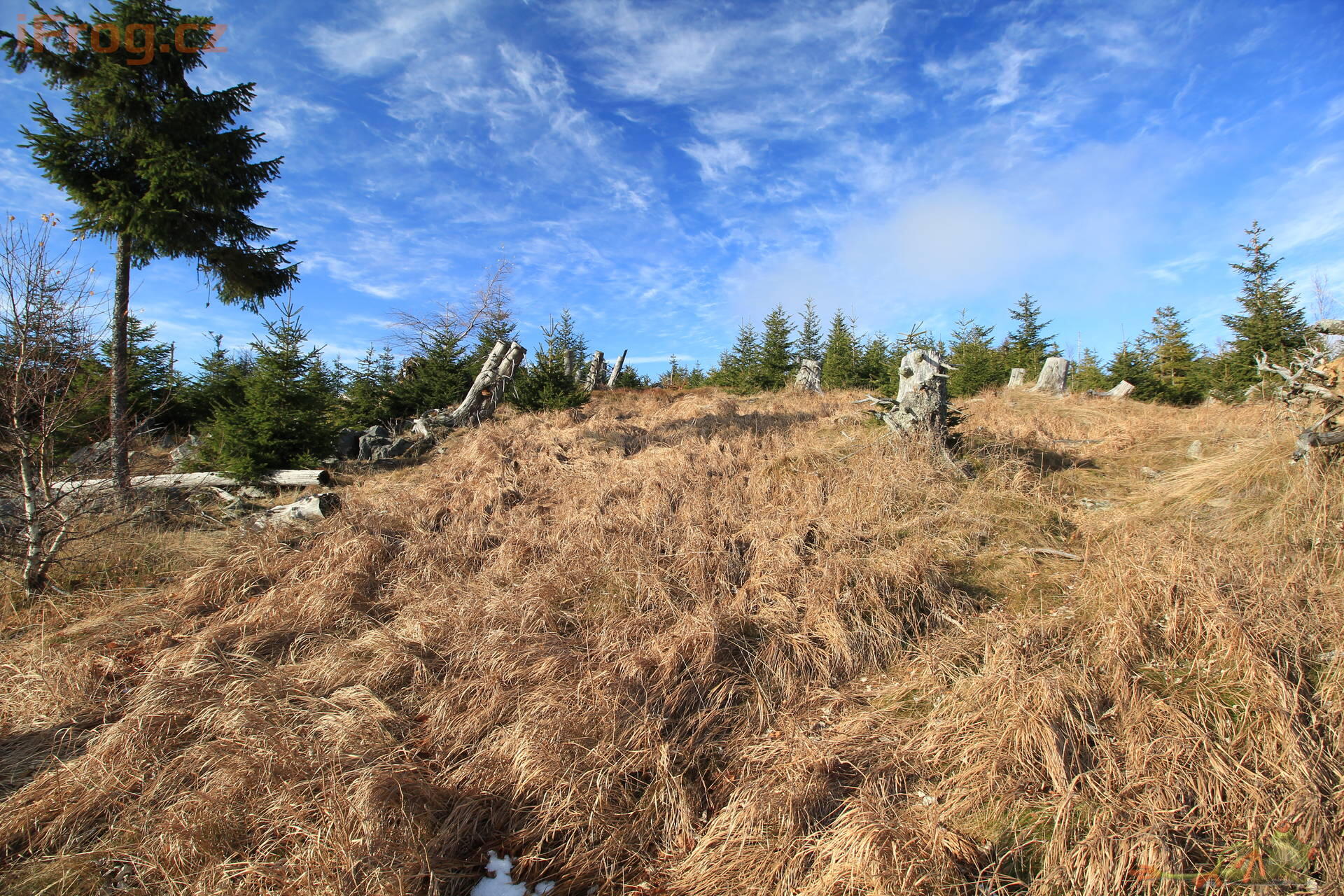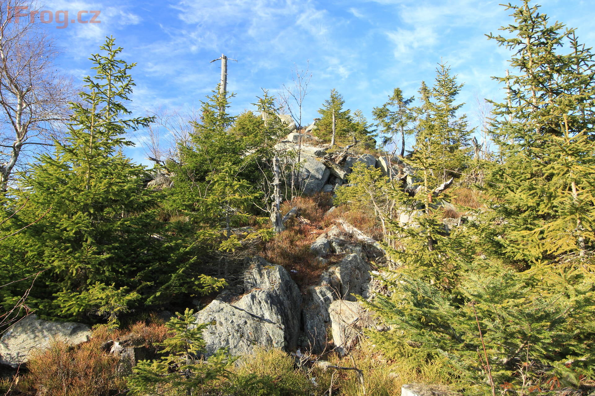 - pravidelný suk 3,5 km západně od Nové Hůrky. Kupovitý vrchol na rozvodním hřbetu Polomu. Rozptýlené balvany, vrchol tvořen malou skalkou. Od severu k jihu vede přes vrcholovou část kamenice – pozůstatek ohraničení polností mezi Prášily a Železnou Rudou v době největšího odlesnění. Zalesněno rozvolněnou smrčinou, ve vrcholové části paseky s výhledy. Poblíž vrcholu geodetický bod.